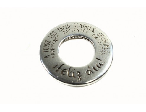 Anilla plana zamak baño plata *Feliz día* 25mm int 12mm