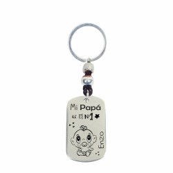Llavero dí­a del padre (Mi papá el nº 1) Cuero y zamak baño plata - Medida de la chapa 49X28MM