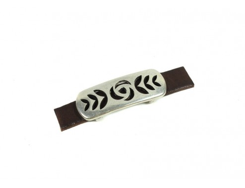 Entrepieza labrada zamak baño plata 36 x 13mm pase 10 x 2 mm