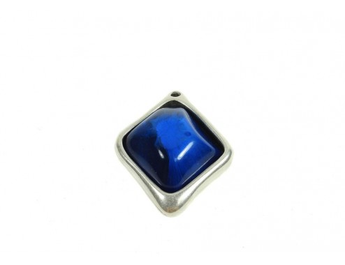 Colgante Rombo Zamak baño plata y Resina 41 x 35 mm Azul