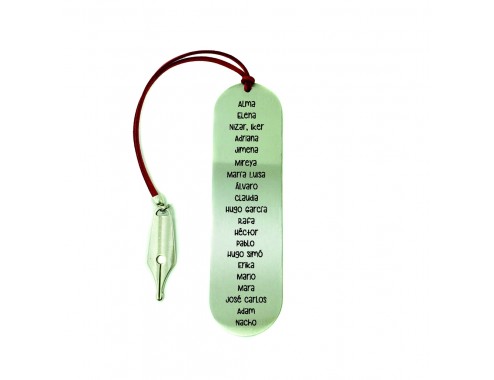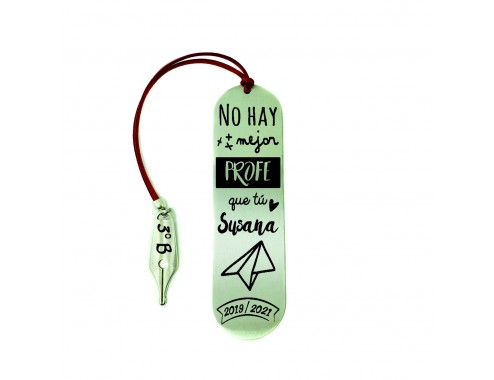 Marcapáginas "No hay mejor profe que tú" con nombres fabricado en Acero con nombres personalizables, el regalo fin de curso perfecto.
